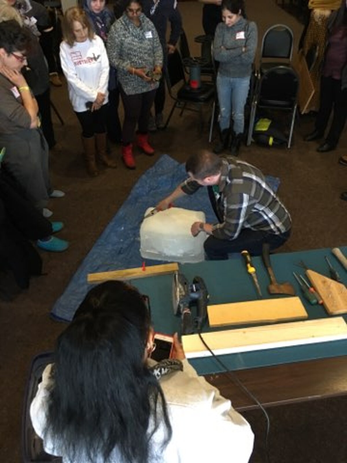 Adrian Merrill presented on outside and risky play. Educators tried wood work and ice sculpturing activities.